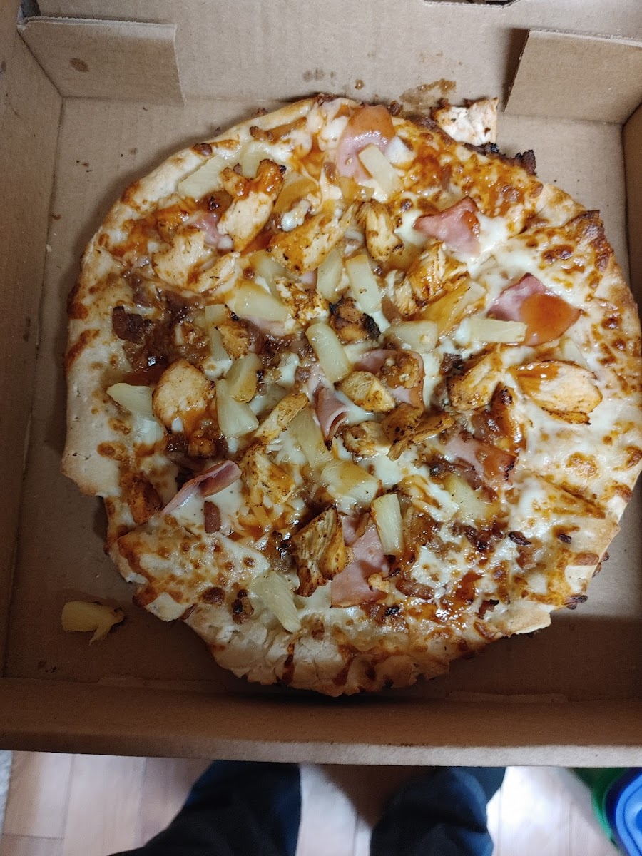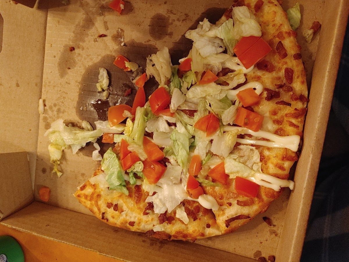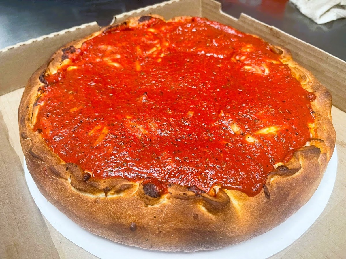 Pizza slaps. Bread sticks slap (my friends and I call them butter clouds lol). I also love when a pizza place offers a spicy sauce. I would definitely recommend trying it on your pizza if you are tired of the overly sweet sauces of most pizza joints. I've been going here since they opened and would definitely recommend trying them if you live in the area. Try getting a Big Storm deal for if you have a get-together or party. 4 large pizzas, bread sticks, and a 2 liter of pop for a good price. This is how my Chicago style pizza was delivered. The actual food is good, but I was pretty disappointed with the delivery with this specific order. I hadn't ordered from here in quite some time, but noticed they had a Chicago style now and was excited to try it. I personally haven't had any issues in the past like this until now. Edit: I was reached out to by someone and they offered to make it right. My review has been updated to reflect the service that has been provided to me. Thanks.